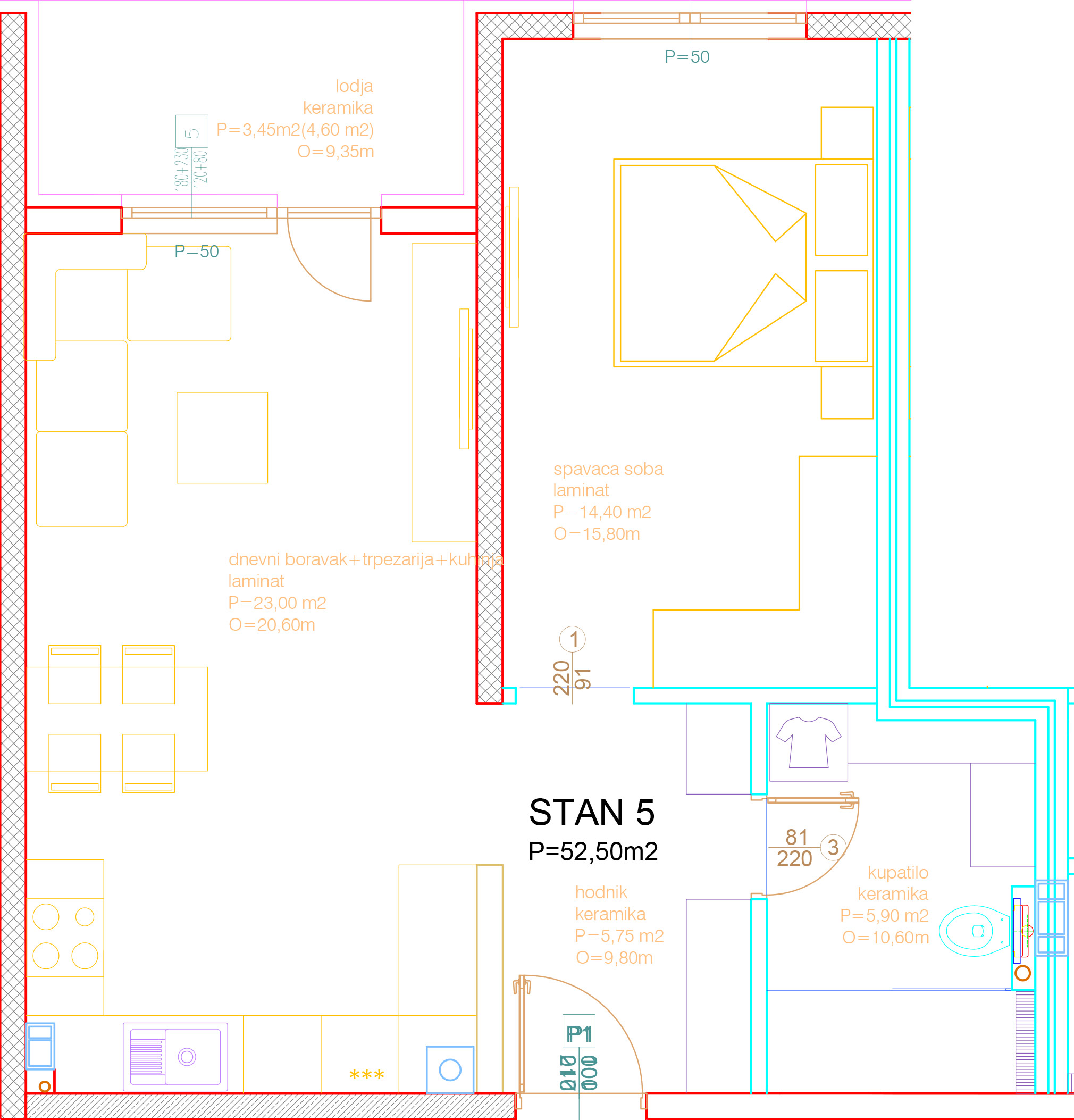 Tlocrt - Stan 5 - 52,50m2